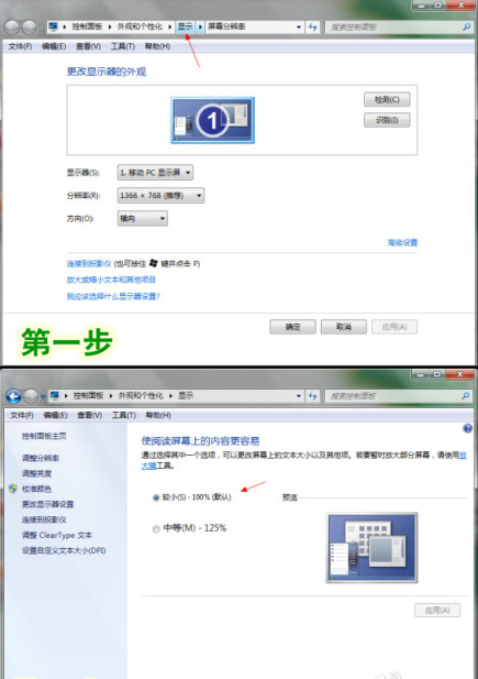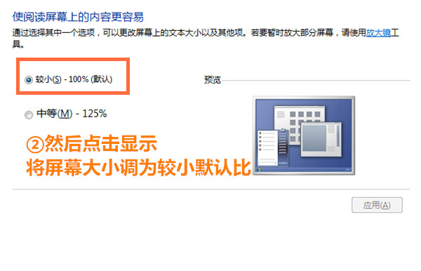 2、将屏幕大小调为较小默认比,然后应用即可。