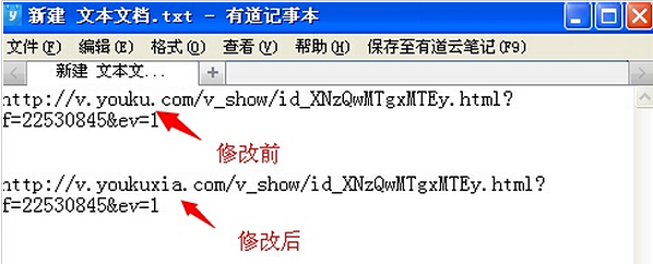 3、修改地址栏的内容,如果是优酷视频,则在youku后面加上“xia”三个字符,同样土豆也是在tudou后面加这三个字符。