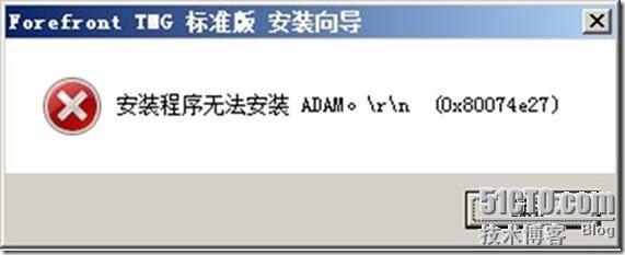 在重新安装Forefront TMG的时候,如果出现“安装程序无法安装ADAM”的错误,如图2-3所示。
