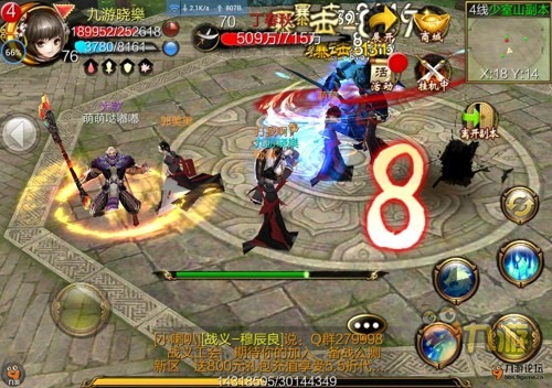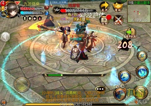 关键这个BOSS有点难打,血多而且BOSS还会召唤金轮法王,在明王招换到中间的时候BOSS是免疫伤害的,不会受到攻击,所以这里少林或者其他近身职业站中间打,2逍遥站开对站着,站到能打到中间BOSS,四个角落会出现明王,这个是小的他会跑到中间去帮助BOSS抵挡伤害,当明王王成功跑到中间后会有100多万血要打,这很老火。