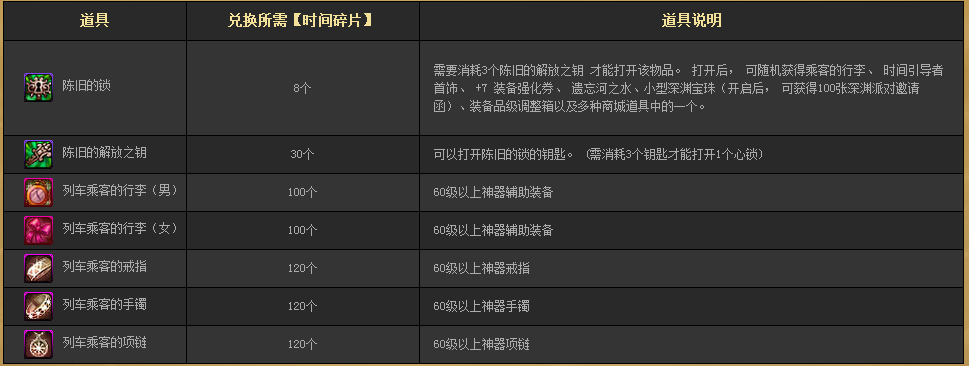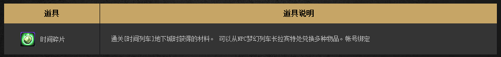 利用【时间碎片】可以在NPC梦幻列车长拉宾特处商店兑换各种给力奖励。