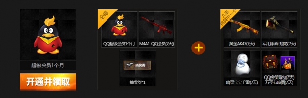 在此页面中开通或升级超级会员1个月,可获得QQ会员专属道具和抽奖券*1(活动2中使用),还可随机获得以下四个道具中的一个。