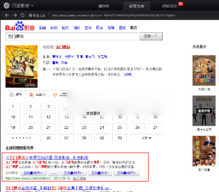 三、这里的搜索结果跟用百度影音浏览器的搜索结果一样都是以百度搜索引擎展示的,这里我们得找一个小网站点击观看,像优酷、乐视之类的网站会因为版权问题或是竞争问题不会让你用百度影音下的。