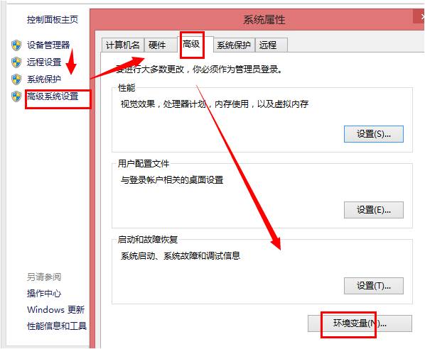 4、这个情况请右键我的计算机 =》属性 =》高级系统设置 =》高级 =》环境变量。