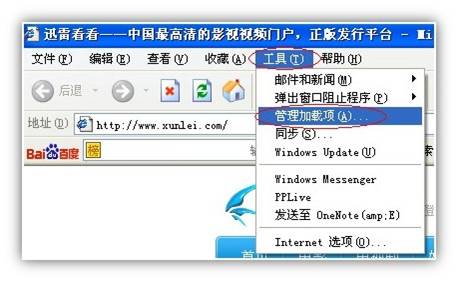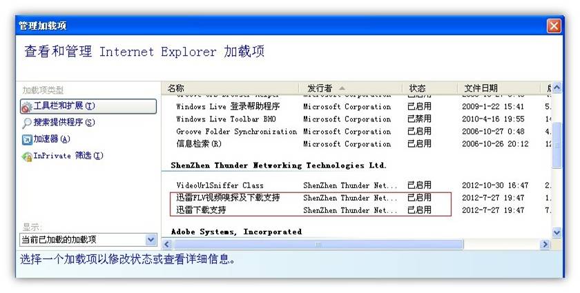 3、如果管理加载项内并没有迅雷下载支持的控件请重新下载迅雷并先卸载再重新安装,不要覆盖安装。