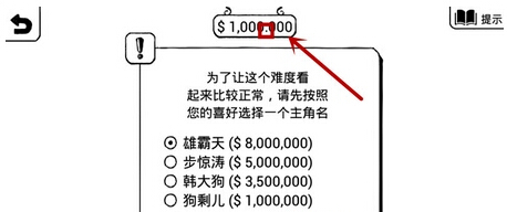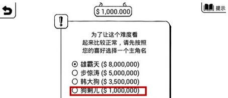 1、关卡1,进来后就会看到界面上起名字,小伙伴们只要从中取一个可以负担起的名字,以下图中有四个名字,图中价格只能取得起第四个。