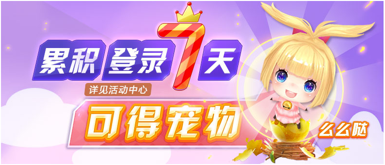 3、活动期间累计登录7天:爱心*1,钻石*10,金币*10000,宠物-么么哒*1;