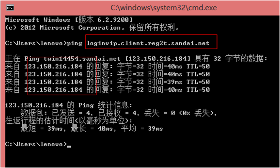 通过电脑左下-点击开始-运行-输入cmd确定,再次输入对应的域名ping 登录服务器看是否正常。
