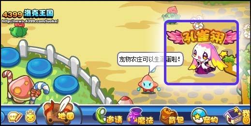 1、前往宠物园,点击场景中的孔雀翎,打开活动对话框