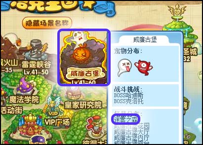 不过小洛克可以穿上魔法装扮提升表演成功率。挑战迷雾之森的宠物将有机率获得南瓜法师/镰刀法师/金色南瓜/金色恶魔魔法装扮,迷雾之森就在威廉古堡哦!