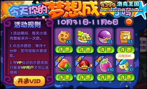 PS:有VIP标识的许愿奖励只能是VIP用户才可以选择哦!每天只能许愿一次!
