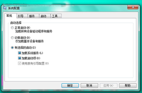 修改启动项的方法十分简单,用我们熟知的组合键 WIN+R,打开运行窗口,然后输入msconfig,单击确定,这时会打开系统配置窗口,在常规选项卡中的启动选择下面,选择选择性启动,系统服务是必须的,然后可以根据后面的选项卡来调整我们需要修改的启动项,单击确定退出后,重启计算机就完成了。