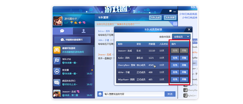 车队队长可以在车队群组里就可以对成员进行管理。开除,任命,禁言一键操作,简单轻松!