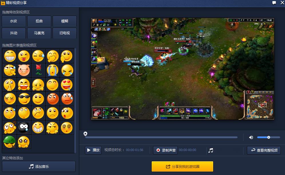 A:您可以在这里为您的英雄时刻添加特效,例如表情、动态特效、背景音乐、录音等!要不在您五杀的时候来大吼一句?