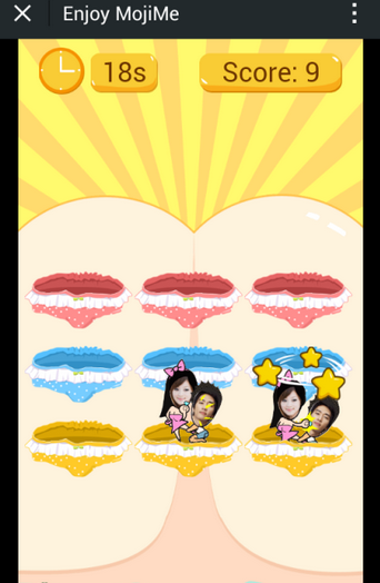 7.进入MojiMe的游戏界面,上一共有九个洞洞,你制作的头像表情会随机从某一个洞洞跳出来