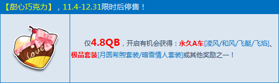 qq飞车甜心巧克力能开出什么呢?qq飞车甜心巧克力在11月4日上架了,11月4日11点起-12月31日活动期间,购买“甜心巧克力”就有机会获得永久A车[凌风/和风/飞艇/飞焰]、月圆希煦套装、暗雪情人套装等奖励,下面小编就给大家详细介绍qq飞车甜心巧克力奖励吧。
