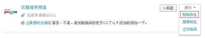 进入我的粉丝页面,点击“操作”下拉菜单中的“移除粉丝”即可。