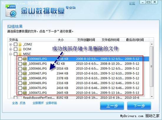 从图片中可以看到,金山毒霸数据恢复工具顺利地找到了被删除的照片文件,甚至还包括了09年删除的照片,笔者将它们恢复后再进行打开操作,所有被恢复文件都达到了100%的完整恢复。