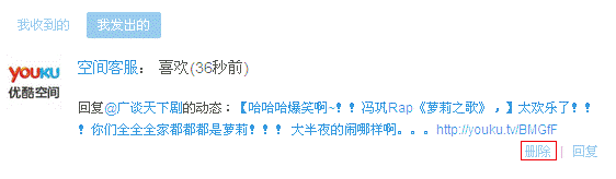 登录“我的首页”后,可以对自己发表的评论及自己所发的动态下的评论进行删除。进入“我的评论”或点击动态右下方“评论”,在有权限删除的评论内容下会显示删除链接。