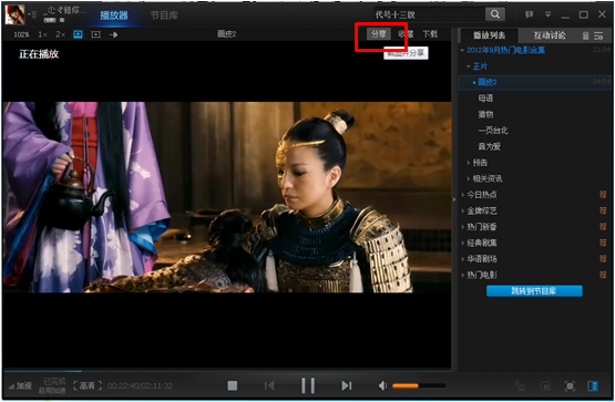 1、点击“PPTV网络电视”播放器界面右上角“分享”按钮