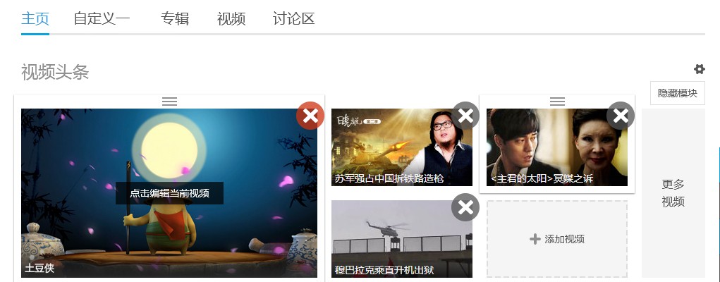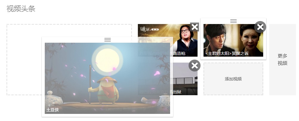 3、最多可以添加5个视频头条,视频头条还可以拖动、删除和编辑,操作非常简便。