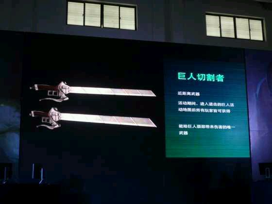 1、巨人切割者(限时销售)为了击杀巨人而制造的近战武器,形似大型刀片,玩家进入新地图就有机会获得!