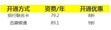 开通方式不同,所需要的资费也不一样,目前最优惠的方式是通过【招商联名卡】和【迅雷银通】享受最低折的优惠。