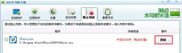 4、再点击信任列表,讲PPTV.exe添加到信任列表中