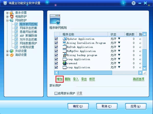1、打开您的瑞星,选择电脑防护,找到下面的程序联网控制,点击设置