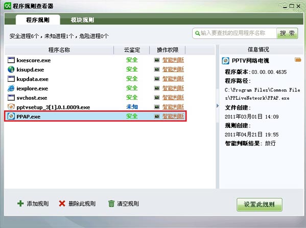2、找到PPAP.exe和PPTV.exe,点击后面的智能判断