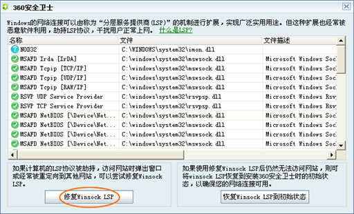 4、如过上步操作无效,并且您经常玩游戏,则请您通过360安全卫士或是下载LSP修复工具(下载地址:http://dl.pconline.com.cn/html_2/1/66/id=40270&pn=0.html) 进行修复操作。打开360安全卫士,选择“高级”中的“高级工具集”,然后选择“LSP修复工具”--“修复 Winsock LSP”,修复后,再打开PPTV看看是否能解决100%、90%无法播放的问题
