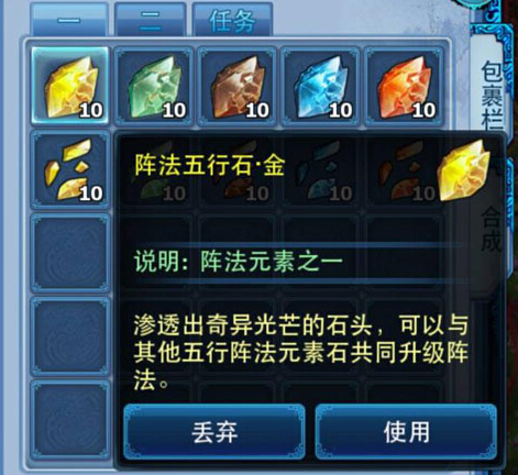 一、玩家可以利用同属性的【阵法元素】来合成对应属性的【阵法五行石】获得。