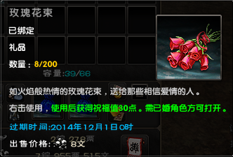 玫瑰花束:绑定,使用后提升祝福值30点。