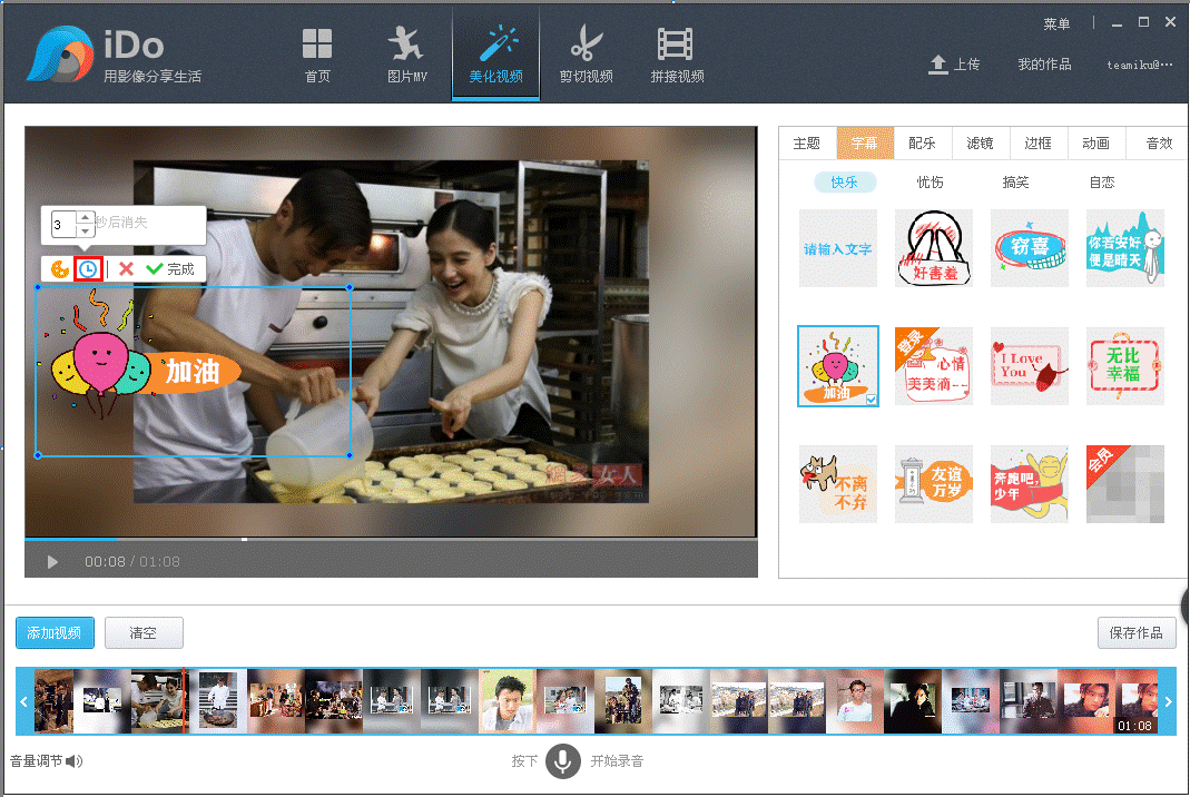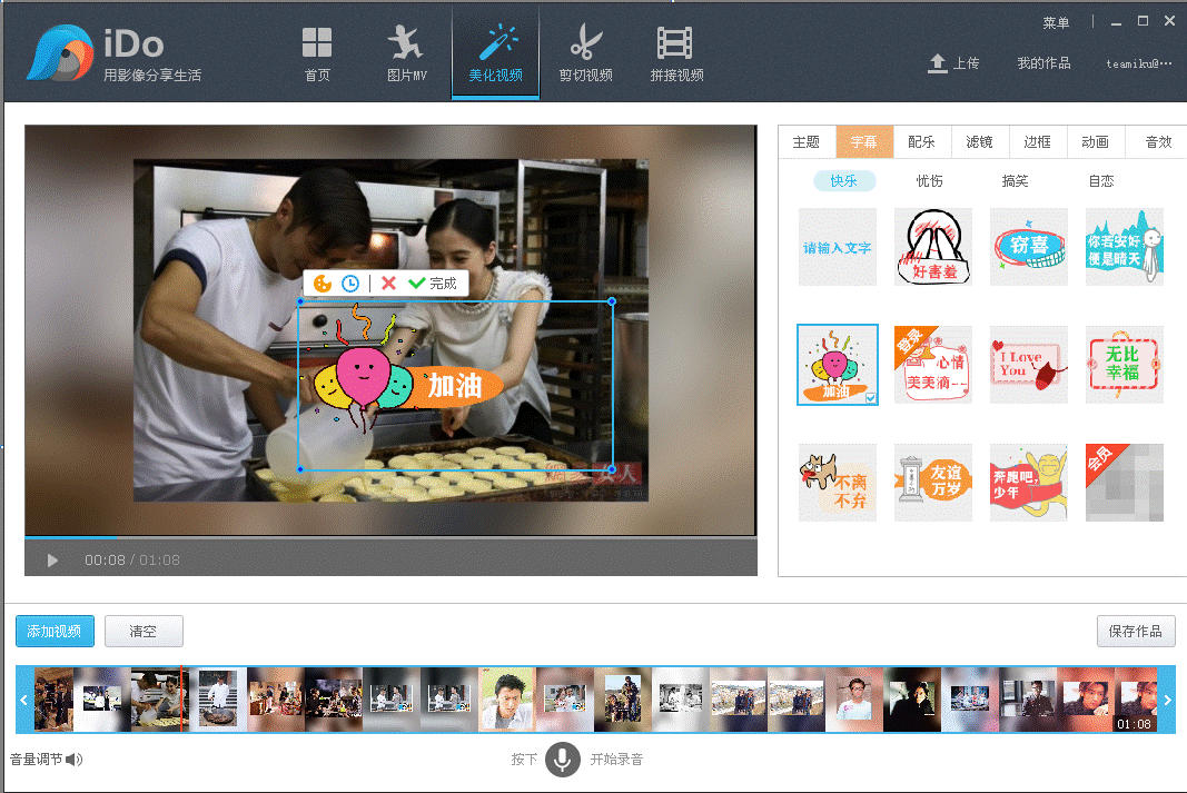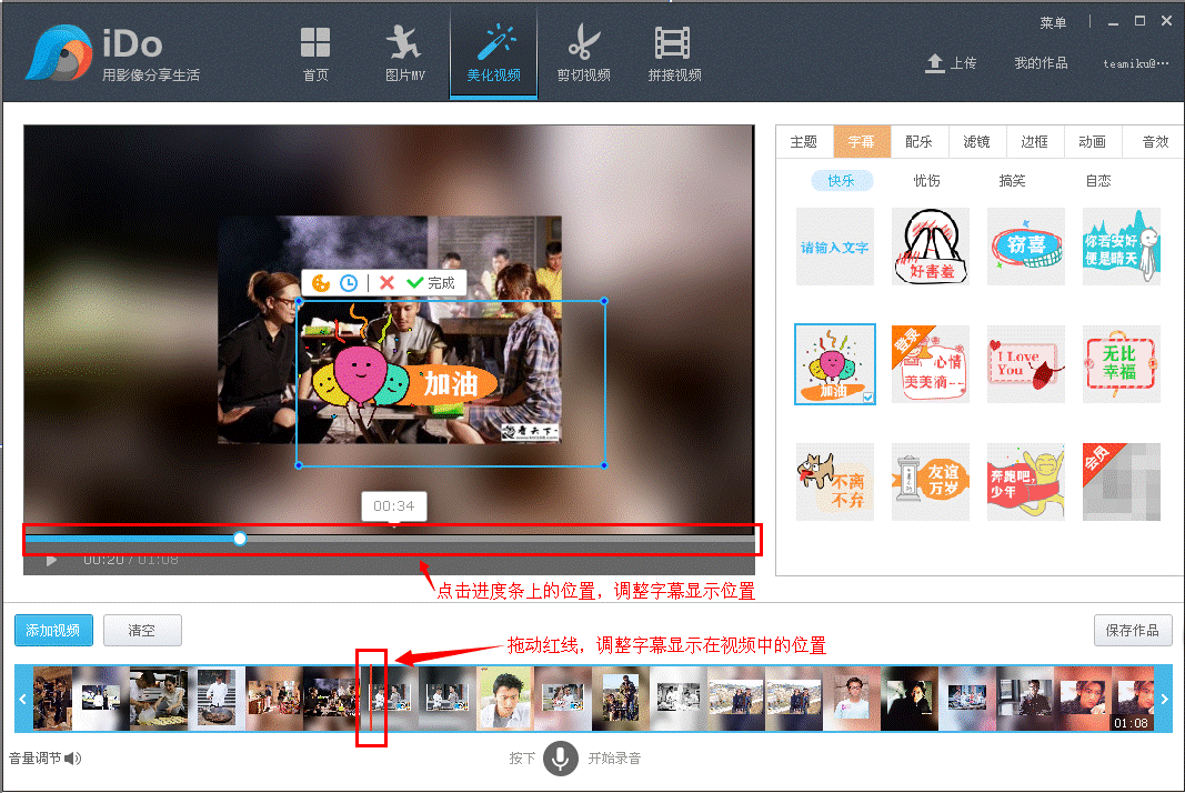 2、点击字幕顶端的“完成”按钮,添加字幕完成;