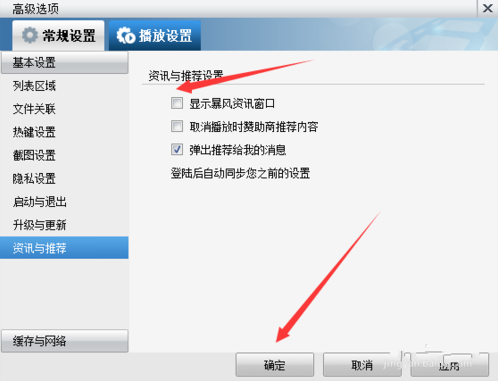 四、将显示暴风资讯窗口取消勾选,并点击确定就可以了!