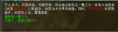 玩法说明:玩家完成兄弟同心活动中的任意任务,均会减少诸恶之源的进度,从而削弱穷奇的力量。