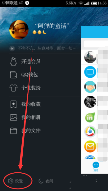三、点击一下最左上角的头像之后,接着点击最左下角的“设置”。