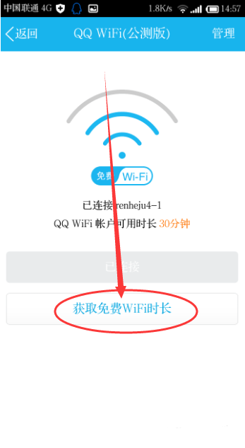 我们可以点击一下“获取免费wifi时长”。