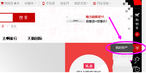 1、在电脑上看天猫宝余额,要登录天猫的账号才能够查看。从天猫首页的最右边点击那个我的资产。