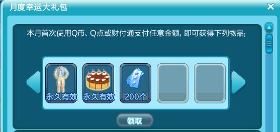 首次在炫舞消费的玩家可获得装有永久期限彬礼海洋/漫雨凝香、永久徽章蛋糕甜心与200点券的首付礼包。该礼包仅送给首次消费的玩家,无论您首次在炫舞中消费了多少QB,都可以免费获得该礼包。