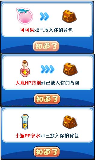 活动奖励:小瓶PP水、可可果、大瓶HP药剂