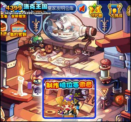 1、前往皇家发明仓库,点击场景中制作排位赛徽章,打开活动对话框