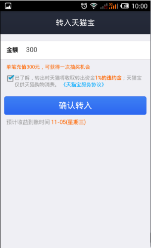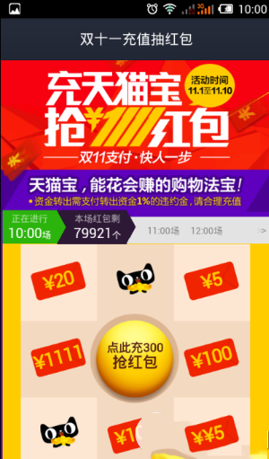 3、进入天猫宝充值页面后,点击页面的充值按钮即可。充值完成后还可以抽奖哦!