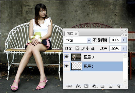 5、新建图层1,并把图层1移到图层0的下方,如图所示。
