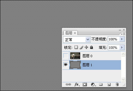 6、选择油漆桶工具,在属性栏中设置前面自定义的图案,并填充到图层1中,取消图层0的眼睛,如图所示。