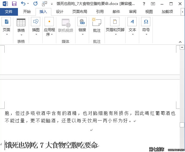三、返回Word,就能看到选中的Word文档已经插入到指定的位置了,如果上一步中同时选中了多个文档,那么,“插入文件”对话框里最上面的文档会被最先合并。