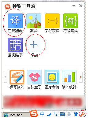3、在弹出的“搜狗工具箱”中点击“+(添加)”。打开“搜狗输入法应用中心”。