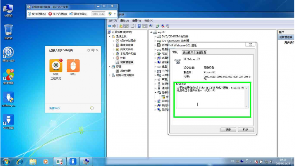 QQ上开视频会出现摄像头异常无法建立连接的问题,此时我们可以用USB宝盒修复摄像头异常,具体方法如下