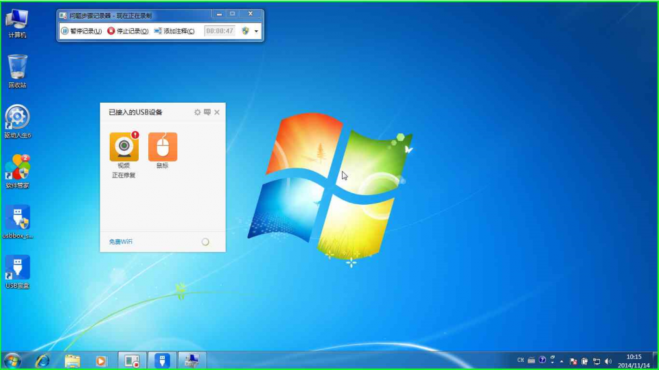 4、现在打开USB宝盒点击摄像头图标,就会开始修复