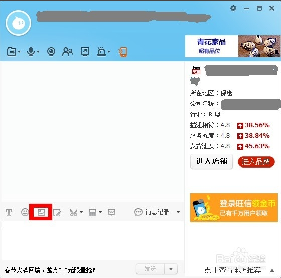 3、第二种方法,点击对话框下面的图片按钮(红框处),可以发送单个图片给对方